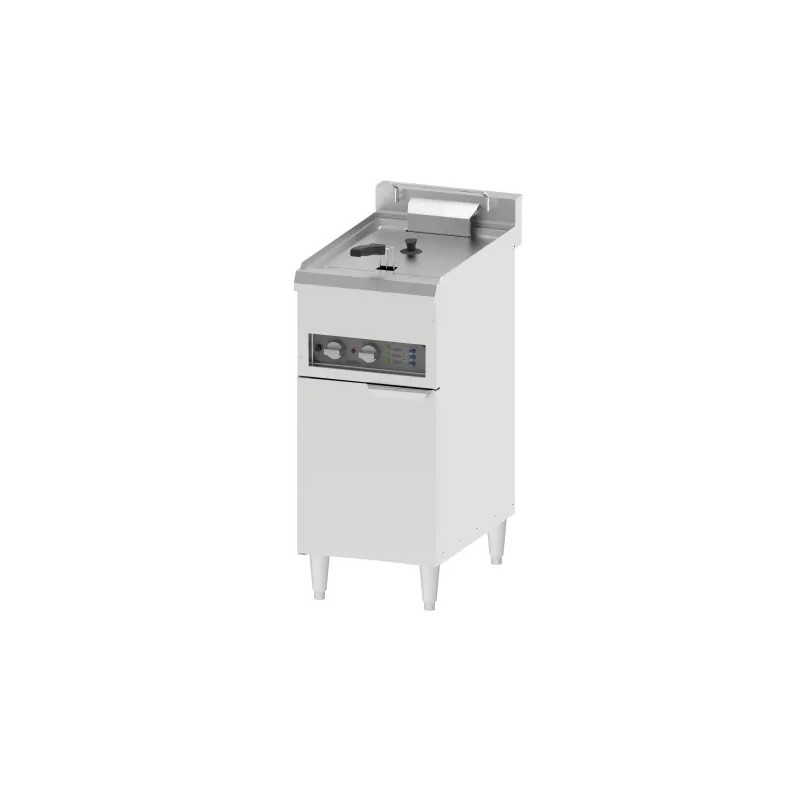 Acier inoxydable - Capacité de la cuve : 16 litres - Minuterie - Voyant lumineux de chauffe - Possibilité d'actionner les 3 résistances indépendamment - Température réglable de 60°C à 190°C - Thermostat de sécurité - Robinet de vidange - Zone froide - Double contacteur de puissance - Bac de récupération d’huile à l’intérieur du support - Dimensions panier : L 285 x P 327 x H 235 mm (soit 14 L) - Puissance : 12 000 W / 400 V - Dimensions : L 400 x P 660 x H 1 030 mm - Poids : 35 Kg
