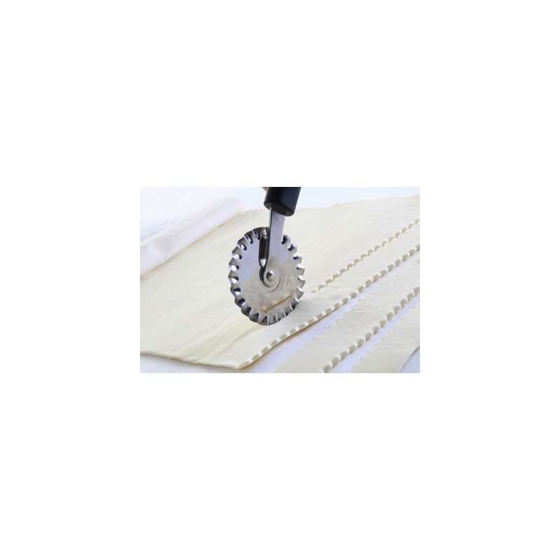 Couteau à pâte cranté manche polypropylène noir longueur: 180mm - Lame en inox diamètre 60mm - lavable en machine