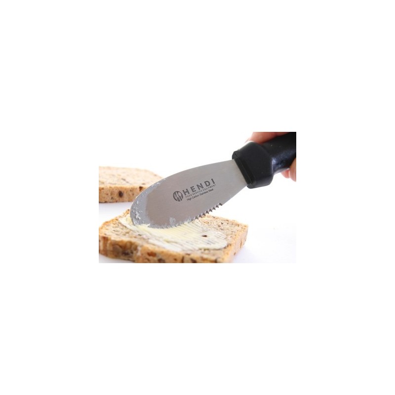 Couteau à beurre cranté manche polypropylène noir longueur: 225mm - Lame en inox 100x85mm - lavable en machine